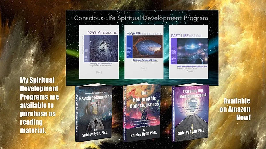 Psychic Expansion, Holographic Consciousness, and Traveling the Multidimensional Universe are 3 books above have come out of my training program, The Spiritual Development Program of Conscious Life Institute. So, if you are curious, but you aren't ready for the program, you can read about the program within these books. While reading a book isn't going to give you the skills, it will dispense with any inhibitions in psychic development. There are exercises within the chapters, so you might read the books, do the exercises and then meet with me afterwards, or just experience some amazing opportunities to explore your inner spiritual development—Happy travels!